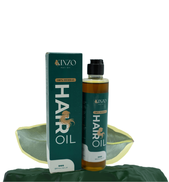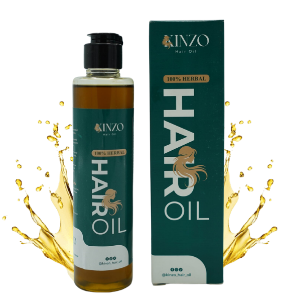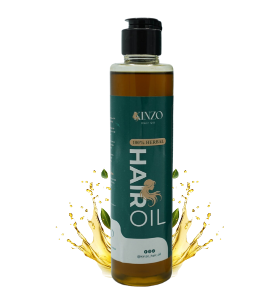 Experience the power of 100% Herbal Kinzo Hair Oil. A unique blend of 21 natural ingredients designed to stop hair fall, promote regrowth, and restore your hair’s natural shine.